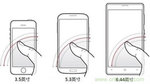 手機屏幕越來越大,多大的屏幕才好用呢?其實這個因人而異。調查顯示,男性手掌平均長度為18.9cm,大拇指長度7cm左右,4.5英寸是最佳尺寸。而女性為17.2cm和6cm,最佳尺寸為4.0英寸。