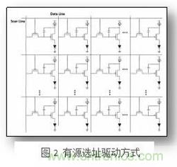 而第三種“半有源”驅動雖然可以較好地避免像素之間的串擾現象,但是由于其像素電路中沒有存儲電容,并且每一列的驅動電流信號需要單獨調制,并不能完全達到上面列出的有源選址驅動方式的全部優勢。