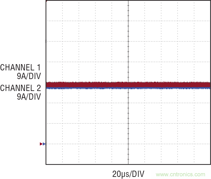 圖 10:在滿負載時 LED DC 電流均分,兩個并聯(lián)驅動器之間的電流差別非常小。