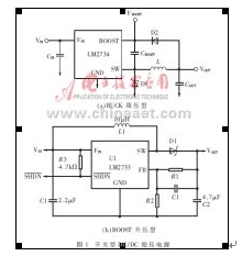 圖1為二款不同功能的開關(guān)型DC/DC轉(zhuǎn)換電路。它們具有轉(zhuǎn)換效率高、重量輕,既可以升壓,又可以降壓,輸出功率大等特點(diǎn)。由于其轉(zhuǎn)換效率高,電路中元器件的發(fā)熱量相對(duì)較小。由于電路處于較高頻率的開關(guān)工作狀態(tài),只需采用小容量、小體積的濾波電容即可見效。對(duì)輸入源電壓波動(dòng)的容裕范圍比較寬。