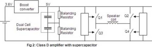 圖2:帶有超級(jí)電容的D類放大器架構(gòu)。