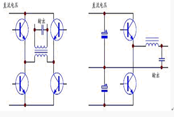 3KVA 以上功率的在線式UPS 幾乎全部采用IGBT 作為逆變部分的功率器件,常用全橋式電路和半橋電路,如下圖4。