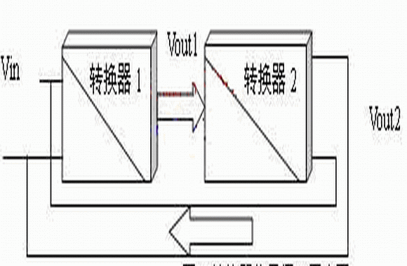 要實(shí)現(xiàn)節(jié)能循環(huán)利用,主要考慮將消耗在電阻負(fù)載上的能量更加合理的利用。如果能將輸出電壓Vout再還原為輸入電壓Vin,則輸出電能轉(zhuǎn)換為輸入的電能,便可以實(shí)現(xiàn)電能的循環(huán)利用,如圖2所示:將原有轉(zhuǎn)換器的電阻負(fù)載R1用等效輸入阻抗的轉(zhuǎn)換器2取代,轉(zhuǎn)換器2的輸出接轉(zhuǎn)換器1的輸入。則與R1等效輸入阻抗的轉(zhuǎn)換器2從轉(zhuǎn)換器1輸出端消耗的能量被轉(zhuǎn)換到轉(zhuǎn)換器1的輸入端,再經(jīng)轉(zhuǎn)換器1又到轉(zhuǎn)換器2的輸入端,實(shí)現(xiàn)了能量的循環(huán)利用。如果在理想情況下,沒有轉(zhuǎn)換損耗,則系統(tǒng)可以自循環(huán)工作。當(dāng)然這是無法實(shí)現(xiàn)的,所以在能量分析時(shí),要引入轉(zhuǎn)換過程的消耗。
