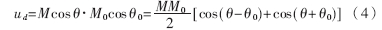 式(4)中第二項是一個倍頻的交流成分,若θ-θ0是常量,第一項則為直流成分。而且,若θ-θ0接近于-π/2,則cos(θ-θ0)=sin(θ-θ0+π/2)≈θ-θ0+π/2。故對于ud的直流成分來說,模擬相乘器相當于一個相位的減法器。