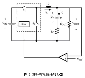 根據(jù)可變結(jié)構(gòu)控制理論來分析滯環(huán)控制降壓轉(zhuǎn)換器,得出輸出電壓紋波的增加和相移是由于輸出電容器的過小ESR所致。這也解釋了為何ESR較小的陶瓷電容器通常都不會使用在滯環(huán)控制降壓轉(zhuǎn)換器上。
