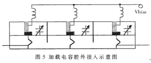 傳統的小信號電調螺旋諧振腔、濾波器中,加載電容采用腔內安裝接入方式。這種方式易實現,但在高頻情況下,腔內強行添加異物,使本來就復雜的螺旋腔場分布變得更為復雜,導致工作特性難以把握。同時,新物體帶來的分布電容將引起中心頻率的偏移,嚴重時造成中心頻率超越所需頻段。