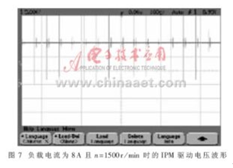 圖7為負載電流為8A、SRM額定轉速運行時IPM的15V驅動電壓波形。