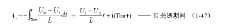 式中i(Ton+)為控制開關K從Ton轉換到Toff的瞬間之前流過電感的電流,i(Ton+)也可以寫為i(Toff-),即:控制開關K關斷或接通瞬間,之前和之后流過電感L的電流相等。實際上(1-47)式中的i(Ton+)就是(1-45)式中的iLm,因此,(1-9)式可以改寫為: