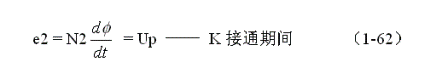 如果用 1來表示變壓器初級線圈電流產生的磁通量,用 2來表示變壓器次級線圈電流產生的磁通量,由于變壓器初、次級線圈電流產生的磁場方向總是相反,則在控制開關K接通期間,由流過變壓器初、次級線圈電流在變壓器鐵心中產生的合成磁場的總磁通量 為: