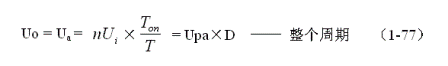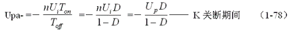 在變壓器開關電源中,正激式輸出電壓的計算比較簡單,而反激式輸出電壓的計算相對來說很復雜,因此,如果沒有十分必要,最好采用半波平均值的概念和(1-75)式,通過計算正激電壓的半波平均值,來推算反激式輸出電壓的半波平均值。因此,(1-75)式主要還是用來計算反激式輸出電壓的半波平均值的。