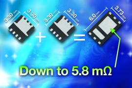 這些指標令設計者能夠用一個器件替代原先的兩個器件,節省成本和空間,包括兩個分立MOSFET間的空隙和標識面積。在一些更低電流和更低電壓的應用中,甚至可以用PowerPAIR器件替換兩個SO-8封裝的MOSFET,至少能夠節省三分之二的空間。