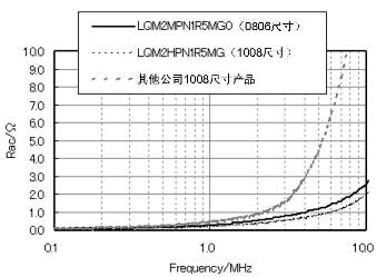 如同圖4中顯示的Rac特性,LQM系列產(chǎn)品能夠充分抑制Rac。同時(shí),圖2的電流-感值偏執(zhí)特性中顯示,它在電流通電時(shí)也能確保高感值,擁有良好的電力變換效率特性。這些性能能夠?qū)崿F(xiàn)手機(jī)在待機(jī)狀態(tài)下的高電力變換效率,對(duì)延長電池壽命做出貢獻(xiàn)。