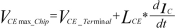 電感LCE對IGBT關斷時產生的過電壓來說是一個重要的參數,如以下公式所示: