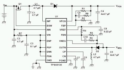 欲提供電源給OLED顯示器,輸出電壓漣波必須很小,開關頻率也必須固定,才能將OLED顯示器的畫面失真和交互耦合效應減至最少。就此而言,采用1.38MHz固定頻率PWM機制的TPS6513x,正是提供電源給OLED顯示器的理想選擇。雖然在負載電流范圍內,提供高精確度的穩壓輸出對于電壓驅動的液晶顯示器特別重要,但它對于電流驅動的OLED顯示器并不會構成太大問題。
