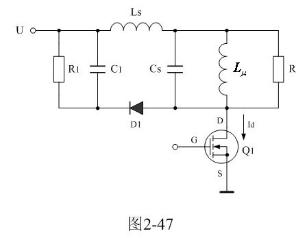 在圖2-46中,Cs1、Cs2都是分布電容,它們對于漏感 來說,既可以產(chǎn)生串聯(lián)振蕩,又可以產(chǎn)生并聯(lián)振蕩。在電源開關(guān)管Q1導(dǎo)通瞬間,漏感與分布電容主要是產(chǎn)生串聯(lián)振蕩,因?yàn)檩斎腚妷洪_始向串聯(lián)振蕩回路提供能量;在電源開關(guān)管Q1關(guān)斷瞬間,漏感與分布電容主要是產(chǎn)生并聯(lián)振蕩,因?yàn)槁└?必須要通過并聯(lián)回路釋放能量。在實(shí)際應(yīng)用中,漏感相對于勵磁電感 來說很小,因此如果不考慮漏感的作用,完全可以把Cs1、Cs2看成是一個分布電容。