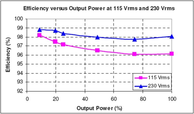 經(jīng)測(cè)試,這原型在90Vrms、滿載、無風(fēng)扇(機(jī)箱打開,室溫)條件下的能效達(dá)94%,而在100Vrms時(shí)達(dá)95%。在20%負(fù)載時(shí)能效更接近或超過96%。這種無橋PFC架構(gòu)將是適合大功率應(yīng)用的一種極高能效的解決方案。