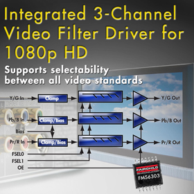 飛兆半導(dǎo)體擁有業(yè)界最廣泛的精選視頻濾波器和創(chuàng)新的開(kāi)關(guān)矩陣產(chǎn)品系列,支持標(biāo)清和高清視頻應(yīng)用如機(jī)頂盒、DVD、電視和便攜式多媒體設(shè)備。這些集成式產(chǎn)品支持全部視頻標(biāo)準(zhǔn)和信道配置,并可替代多個(gè)分立組件和節(jié)省寶貴的電路板空間。FMS6303采用14腳TSSOP封裝,其引腳與飛兆半導(dǎo)體成功的FMS6203可選SD、ED、1080i HD視頻濾波器兼容。
