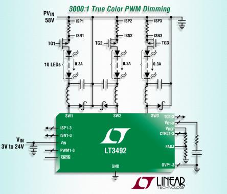 - 每個通道都能獨立調(diào)光至高達(dá) 3000:1 的調(diào)光比