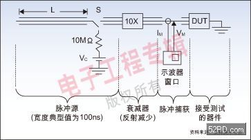 Robert推薦了一種測量鑒定同類ESD器件的直觀方法—相同應力電壓觸發后的屏幕截圖和傳輸線路脈沖(TLP)分析法(圖2是相關電氣原理圖),可用它來對比不同廠商的產品。前者可對比ESD器件對大電流導電率(鉗位電壓)、到達低工作電壓后的時間,后者通過TLP電流-電壓(I-V)曲線對ESD器件放電過程一目了然。