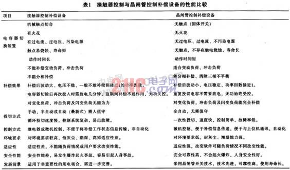 利用接觸器控制補償設備與用晶閘管控制方法來補償設備的性能比較如表1所列。