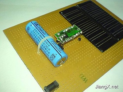 因為我們是要用太陽能電池板來給電池充電的,畢竟太陽能電池板產生較高電壓的機會不多,電池自身電壓過高后會導致充電無法進行。對于我手頭的這一種太陽能電池板,在室內靠窗光線比較好的地方輸出電壓便可達到1.2伏以上(連接在電路中時,非空載狀態下),這樣就開始給額定電壓為1.2V的電池充電了,但如果要使它輸出3V以上的電壓就恐怕要拿到太陽底下去了。用一節電池儲能的好處就是可以大大降低充電對光強的要求,延長給電池充電的時間。