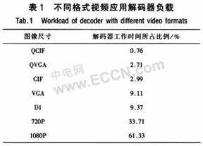 即便采用同一種編碼格式,面向不同的應(yīng)用場(chǎng)景,多媒體應(yīng)用的負(fù)載情況也有很大區(qū)別,下面以H.264.視頻壓縮標(biāo)準(zhǔn)為例,給出一些常見(jiàn)格式的視頻應(yīng)用的負(fù)載情況,見(jiàn)表1。