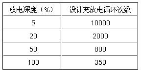 蓄電池的壽命一般是這樣定義的,浮充狀態(tài)下為3-5年或3-8年,并不是說(shuō)蓄電池在頻繁放電狀態(tài)下使用多少年。對(duì)處于非浮充狀態(tài)下工作的蓄電池,其壽命是按照循環(huán)放電次數(shù)和放電深度兩個(gè)因素衡量,如表1所示。簡(jiǎn)單地以能使用多少年來(lái)衡量,是不正確的。