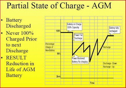 基站停電頻次過(guò)高,一天內(nèi)停電數(shù)次,甚至連續(xù)停電數(shù)天,使基站蓄電池在放電后尚未充足電的情況下又放電,蓄電池長(zhǎng)時(shí)間處于欠充狀態(tài)(饑餓狀態(tài))。如連續(xù)多次發(fā)生欠充,將造成蓄電池容量累積性虧損,硫酸鹽化加劇,蓄電池容量將在較短時(shí)間內(nèi)下降,其使用壽命將較快終止。