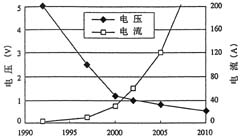 如圖1所示,近年來,電子設(shè)備所采用的LSI的驅(qū)動電壓正在逐漸下降,而消耗電流卻因為設(shè)備功能的多功能化增大了許多,隨著轉(zhuǎn)換器的低電壓大電流化,以半導(dǎo)體元件為首,變壓器、配線等的導(dǎo)通損耗變得愈發(fā)明顯,往往很難維持高效率,為此人們做了大量的研究工作。例如,在把通信領(lǐng)域中常用的48V輸入電壓轉(zhuǎn)換成LSI所用的1V低電壓時,以往的降壓型轉(zhuǎn)換器需要將接通時間比(TimeRatio)設(shè)定在1/40以下。在如此短的時間里流經(jīng)開關(guān)元件的巨大脈沖電流是導(dǎo)致效率下降的主要原因。