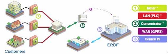 圖1:法國(guó)EDF旗下公司法國(guó)配電公司(ERDF)的Linky項(xiàng)目簡(jiǎn)略示意圖。