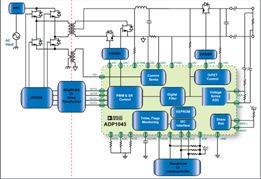 如何提高電源的效率,是目前電源設(shè)計中面臨的重要課題。數(shù)字電源技術(shù)的出現(xiàn)為提高電源的效率提供了新的方法。ADP1043是ADI公司推出的一款針對高端服務(wù)器、存儲器以及通信設(shè)備等電源所設(shè)計的數(shù)字電源控制器,可支持多種拓撲結(jié)構(gòu),并利用直觀的圖形用戶界面(GUI)無需用語言進行編程,便可在幾分鐘之內(nèi)配置包括頻率、時序、電壓設(shè)置與保護限制等系統(tǒng)電源參數(shù)。圖1所示為ADP1043的典型應(yīng)用電路。其所采用的數(shù)字電源技術(shù)可幫助實現(xiàn)高效率電源。