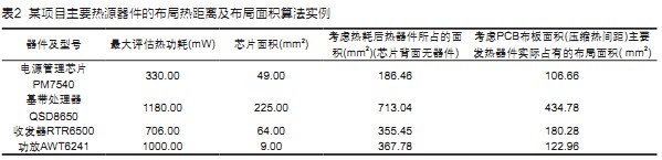 。表2計(jì)算了本項(xiàng)目熱源器件的布局熱距離及布局面積。