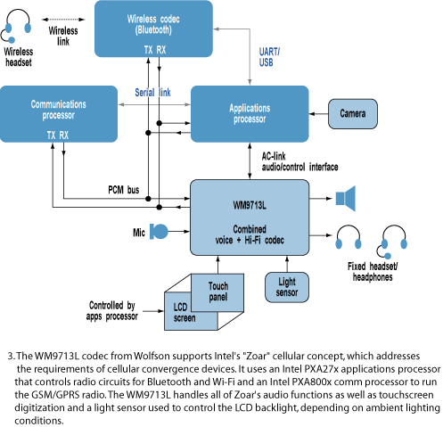 蘇格蘭的Wolfson微電子公司從事硬件音頻編碼解碼器的制造,該公司新產品開發部的副總裁PeterFrith指出,給手機加入回放MP3的功能,或者用于下載音樂,或者作為高質量的鈴聲,意味著用戶已經希望在手機中看到一個相對高保真的回放系統。因此,手機制造商目前期盼出現功耗甚至更低的便攜式DAC,且能夠達到100dB的信噪比。