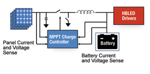 在另一個實(shí)例中,ST微電子開發(fā)了一個高度集成的HBLED太陽能MPPT充電器/驅(qū)動器。這個全集成的方案帶有MPPT優(yōu)化的電池充電器和集成的HBLED驅(qū)動器。這個產(chǎn)品將在2010年晚期發(fā)布,非常適合于HBLED街燈照明應(yīng)用。