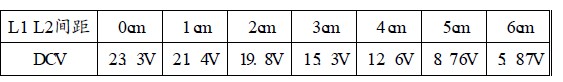 調RP2使其兩端電壓為4.15V,這就是鋰離子電池的充電終止電壓。改變L1與L2的間距,在0-6cm之間基準電壓應當恒定為4.15V。