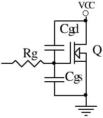實(shí)際使用中還要考慮MOSFET柵漏極還有個(gè)電容Cgd的影響,MOSFET ON時(shí)Rg還要對(duì)Cgd充電,會(huì)改變電壓上升斜率,OFF時(shí)VCC會(huì)通過Cgd向Cgs充電,此時(shí)必須保證Cgs上的電荷快速放掉,否則會(huì)導(dǎo)致MOSFET的異常導(dǎo)通。