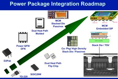 模塊采用的直接敷銅(DBC)技術增強了電氣性能,而陶瓷襯底(如三氧化二鋁及氮化鋁)能夠同時提升冷卻效率。封裝-組裝技術上的改進也實現了幾個裸片和無源器件的平面共同整合(co-integration),以及旨在增加系統整合度的垂直堆棧技術。“解開封裝”(Un-packaging)技術是另一個有意義的研究領域,此技術將幾個布有器件的(populated)的襯底機械整合,免除殼體、端子及基座。
