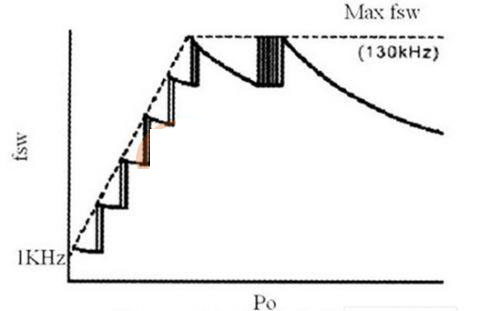 降低開關電源功耗的主要途徑是降低開關損耗和控制電路功耗。減少控制電路功耗可通過選擇功耗低、功能強、所需外部元件少的控制芯片及簡化外部控制電路來實現。這里主要討論降低開關損耗的措施。許多電子產品在使用中常處于輕載或待機狀態,而開關電源*率開關管的開關頻率都很高,當開關電源工作在輕載或待機狀態下時,開關損耗成為主要損耗,相對損耗大大增加,效率降低。降低輕載損耗的有效方法是在輕載狀態下降低開關電源的開關頻率,從而使輕載效率保持與滿載時相同。圖1中,隔離變換控制電路采用準諧振電源控制器FA5531P及外圍元件構成。FA5531P的開關頻率不是由他激振蕩器決定的固定開關頻率,而是由自激振蕩決定。芯片在正常負載時保持固定頻率的準諧振開關狀態,輕載時自動降低開關頻率以減少空載損耗,最低開關頻率可降至1KHz,FA5531P開關頻率與輸出功率關系如圖3所示。FA5531P的另一個特點是具有內部啟動電路,從而也降低了待機功耗。FA5531P自身功耗很低,工作電流僅1.5mA,集成度高,只需極少的外部元件。