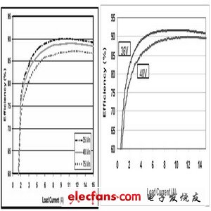 圖3 正常輸出電壓下效率與負載電流的關系曲線(包括最小、正常和最大輸入電壓情況,25°C)
