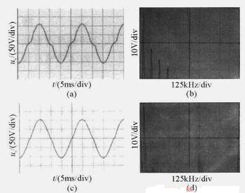 圖5(a)和(b)分別為輸出電壓和輸出電流的波形,從圖中可以看出輸出電流的相位比輸出電壓滯后φ個角度。為了便于對器件的選擇,將輸出電流的波形進行了分解。