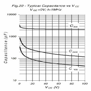 這些電容對橋式變換器設計是非常重要的,大部份的IGBT數據表中都給出這些參數: