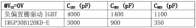 在相同的測試條件下,當柵電壓是在0V或單正向柵驅動情況下,IRGP30B120KD的電路性能顯示dV/dt感生開通電流減小比例為21:1。如果IGBT采用這種方式驅動,電流很小,對功耗的影響幾乎可以忽略。