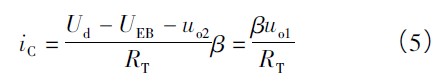 式中,UDZ為二極管壓降,其值等于PNP 晶體管VT 的射極E 與基極B 之間的壓降。電路選擇參數(shù)使uo1 = 0 時晶體管VT 處于微導(dǎo)通狀態(tài),iC≈0,晶體管VT 的補償電流為: