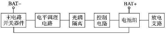 采用單節(jié)鋰電池保護芯片設(shè)計的具備均衡充電能力的鋰電池組保護板示意圖如圖1所示。其中:1為單節(jié)鋰離子電池;2為充電過電壓分流放電支路電阻;3為分流放電支路控制用開關(guān)器件;4為過流檢測保護電阻;5為省略的鋰電池保護芯片及電路連接部分;6為單節(jié)鋰電池保護芯片(一般包括充電控制引腳CO,放電控制引腳DO,放電過電流及短路檢測引腳VM,電池正端VDD,電池負端VSS等);7為充電過電壓保護信號經(jīng)光耦隔離后形成并聯(lián)關(guān)系驅(qū)動主電路中充電控制用MOS管柵極;8為放電欠電壓、過流、短路保護信號經(jīng)光耦隔離后形成串聯(lián)關(guān)系驅(qū)動主電路中放電控制用MOS管柵極;9為充電控制開關(guān)器件;10為放電控制開關(guān)器件;11為控制電路;12為主電路;13為分流放電支路。單節(jié)鋰電池保護芯片數(shù)目依據(jù)鋰電池組電池數(shù)目確定,串聯(lián)使用,分別對所對應(yīng)單節(jié)鋰電池的充放電、過流、短路狀態(tài)進行保護。該系統(tǒng)在充電保護的同時,通過保護芯片控制分流放電支路開關(guān)器件的通斷實現(xiàn)均衡充電,該方案有別于傳統(tǒng)的在充電器端實現(xiàn)均衡充電的做法,降低了鋰電池組充電器設(shè)計應(yīng)用的成本。