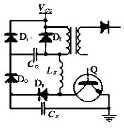 b. 饋能式復合緩沖電路(圖7) : 當晶體管關斷時, 電容Co和電感Ls 并聯運行,將貯存的能量饋送到負載。當電容Co 放電時,電感Ls 上的電壓逐漸減小為0 ,在這段時間內負載電流經續流二極管Df 導通。