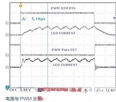 PWM調光方法,實際上是在一小段時間內啟動和重新啟動LED電流。這個啟動和重新啟動循環的頻率必須快于人眼可以感知的速度,以免出現閃爍效果,通常情況下可以被接受的頻率為大約200Hz或更快。