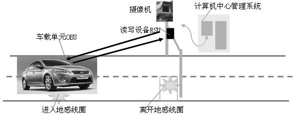 OBU 中存有車輛的識別信息,如車牌號、汽車ID號,一般安裝于車輛前面的擋風玻璃上,RSU安裝于收費站旁邊,環路感應器安裝于車道地面下。中心管理系統有大型的數據庫,存儲大量注冊車輛和用戶的信息。當車輛通過收費站口時,環路感應器感知車輛,路邊單元發出詢問信號,車載單元做出響應。并進行雙向通信和數據交換,中心管理系統獲取車輛識別、車型等信息并和數據庫中相應信息進行比較判斷,根據不同情況來控制管理系統產生不同的動作。通過路邊單元與車載單元進行相互通信和信息交換,以達到對車輛的自動識別,并自動從該用戶的專用帳戶中扣除通行費,從而實現自動收費。