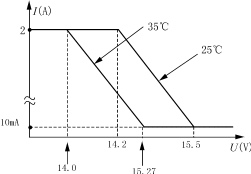 ⑤逐漸減小電子負(fù)載的輸出電壓,電流表的讀數(shù)線性增加,當(dāng)輸出電壓小于14.2V時,電流表的讀數(shù)增至2A并維持不變。