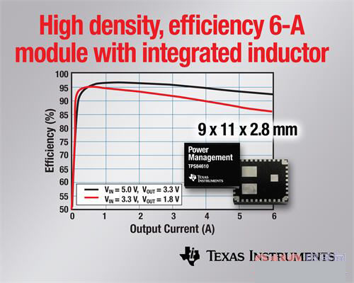 日前,德州儀器 (TI) 宣布推出集成電感器的最新 6 V、6 A 同步集成型電源模塊,可實現每立方英寸 750 瓦特、峰值電源效率高達 97% 的業界最佳性能。TPS84610 支持 12°C/W 的優異散熱性能,比同類競爭模塊強 40%。該器件在單個引線框架中高度整合了電感器及無源組件,只需 3 個外部組件便可獲得完整的、易于設計的 150 平方毫米解決方案,從而簡化電信電源的 DSP 及 FPGA 設計。
