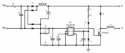 圖7:NCL30000高功率因數(shù)降壓方案應(yīng)用電路。